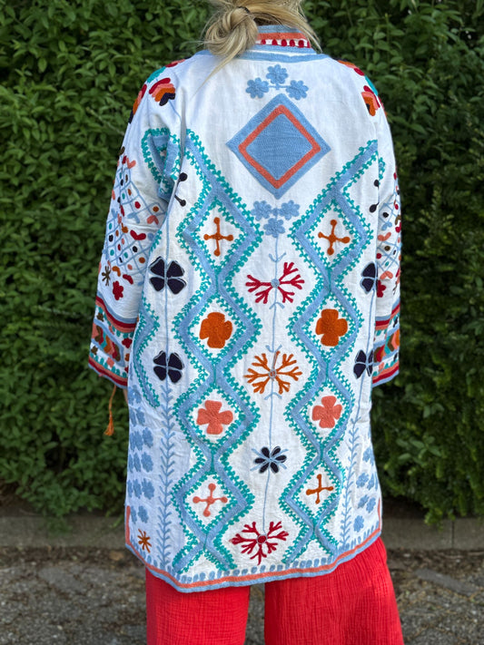UitverkochtMedium Long cotton Embroidery jas Blue orange