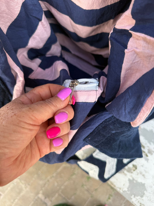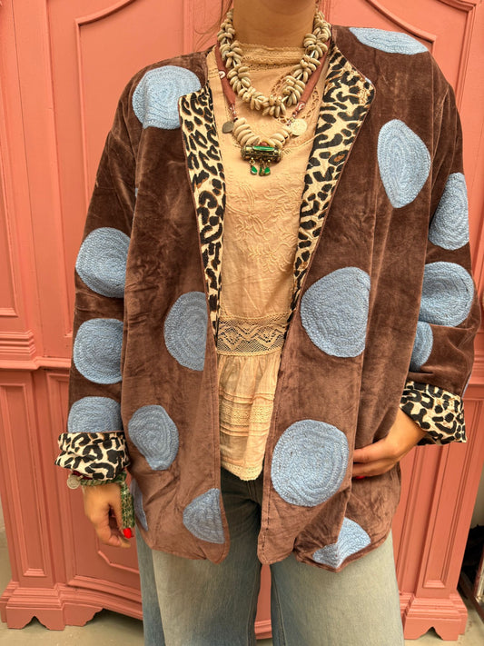 Velvet embroidery bruin blauwe dots RUIT Binnenkant