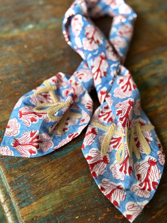 Katoenen blokprint sjaal met geborduurd logo