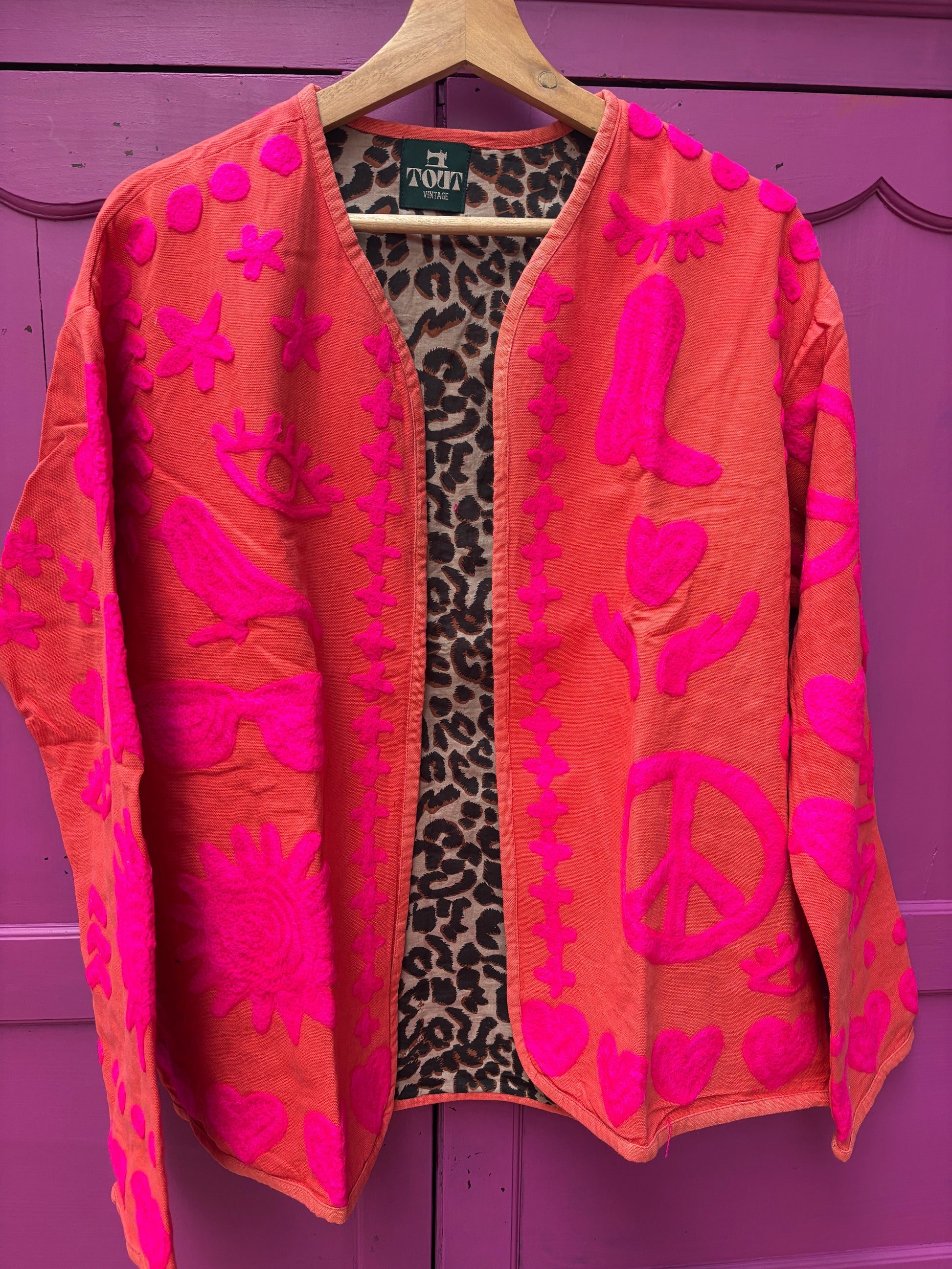 Dit jacket is gemaakt van velvet stof en geborduurd met de mooiste garen. Alles is zorgvuldig geselecteerd met respect voor mens en planeet.