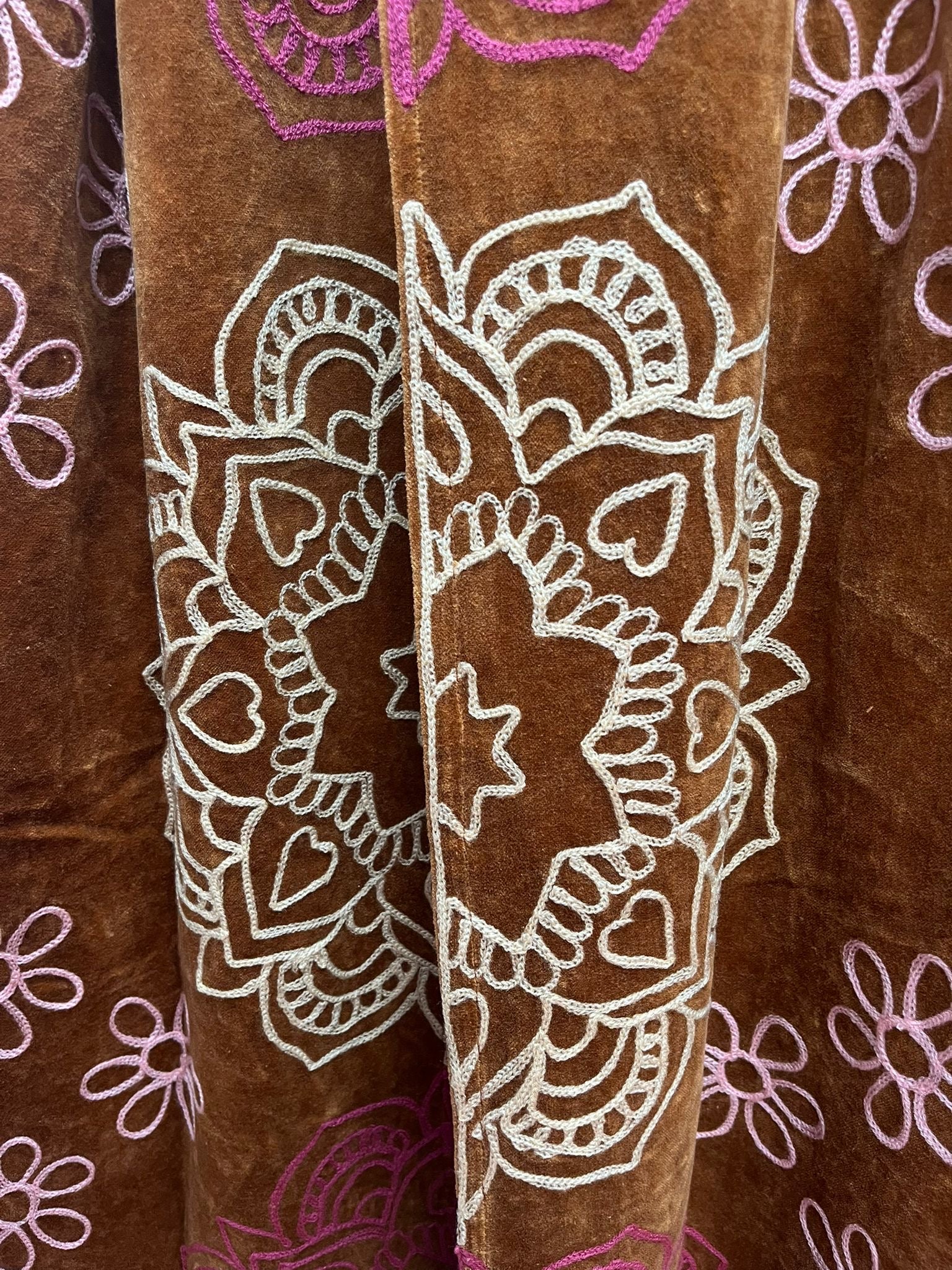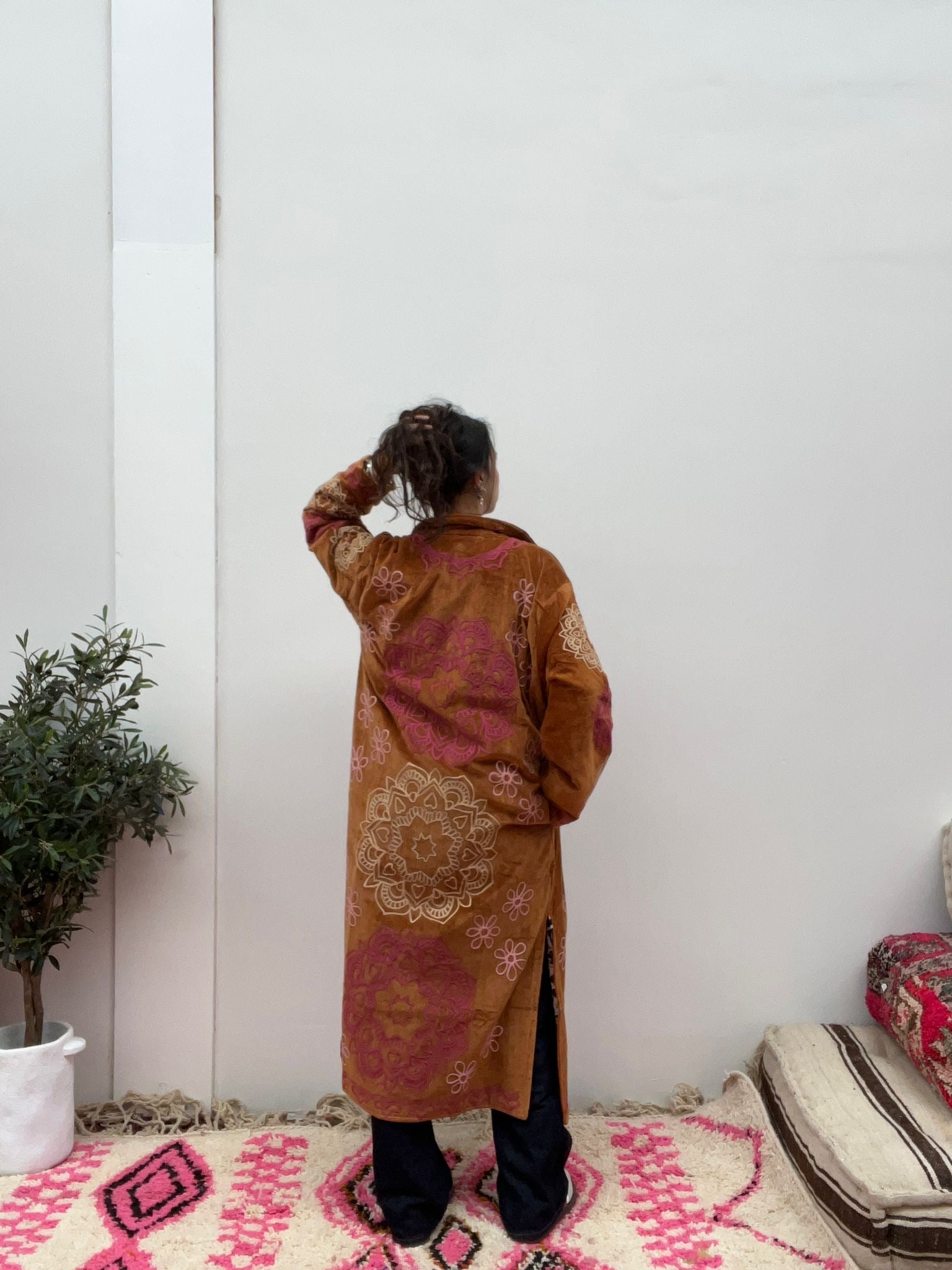 Ons Velvet Jacket mandala is met de hand gemaakt in India, speciaal ontworpen door ToutVintage en geschikt voor wie waarde hecht aan vakmanschap, duurzaamheid en karakter. Elk stuk is uniek en komt uit een gelimiteerde oplage van slechts 100 exemplaren.