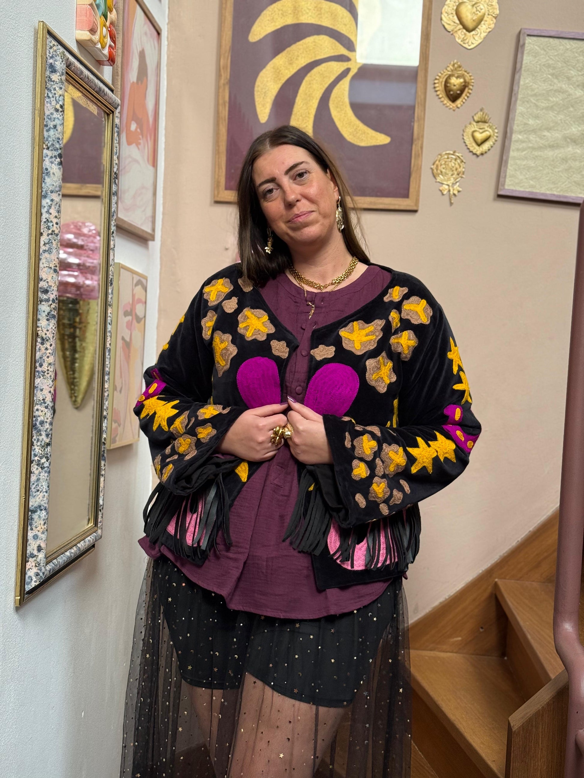 Velvet embroidery jacket Joah jacket fringe