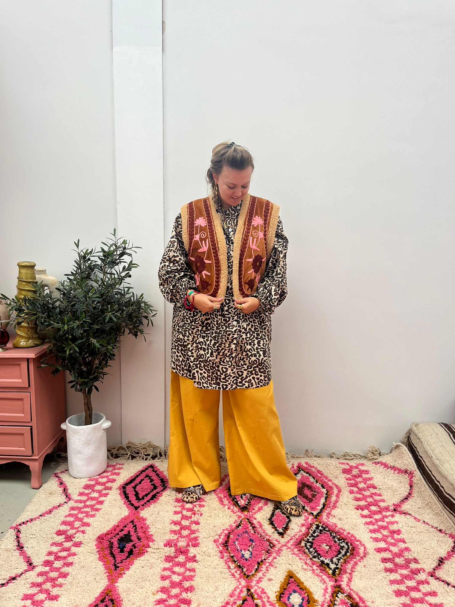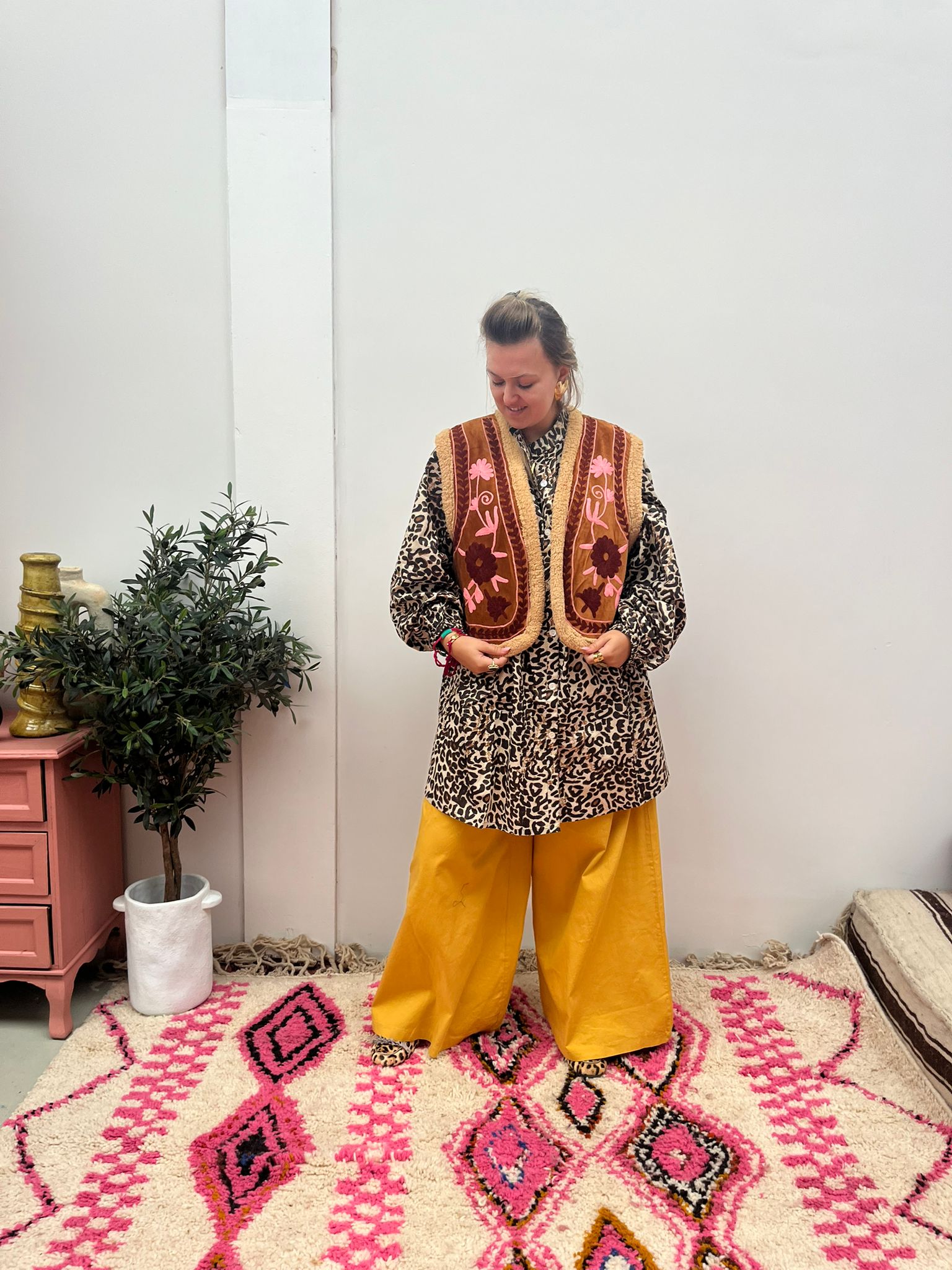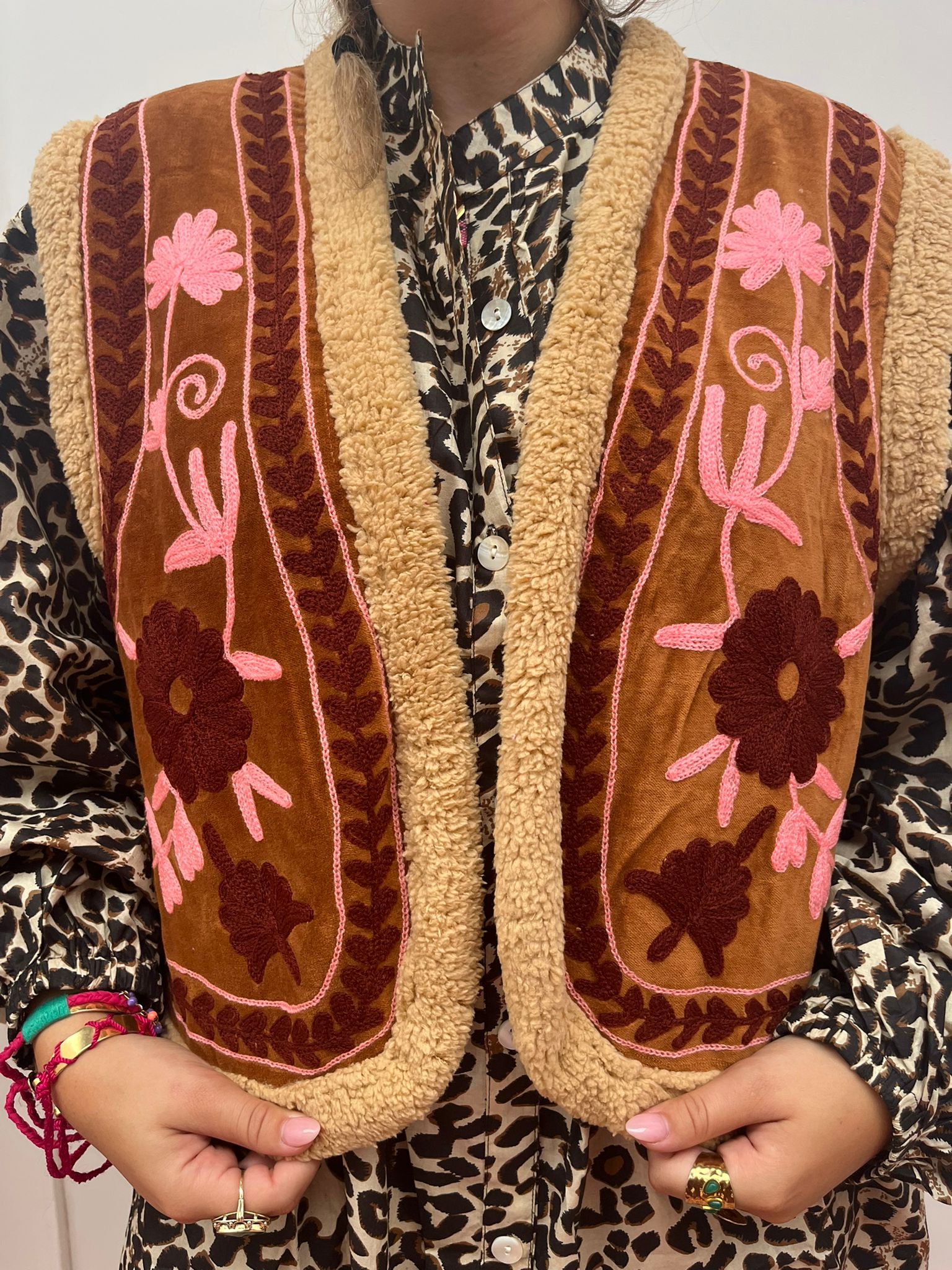 Velvet gilet teddy brown pink