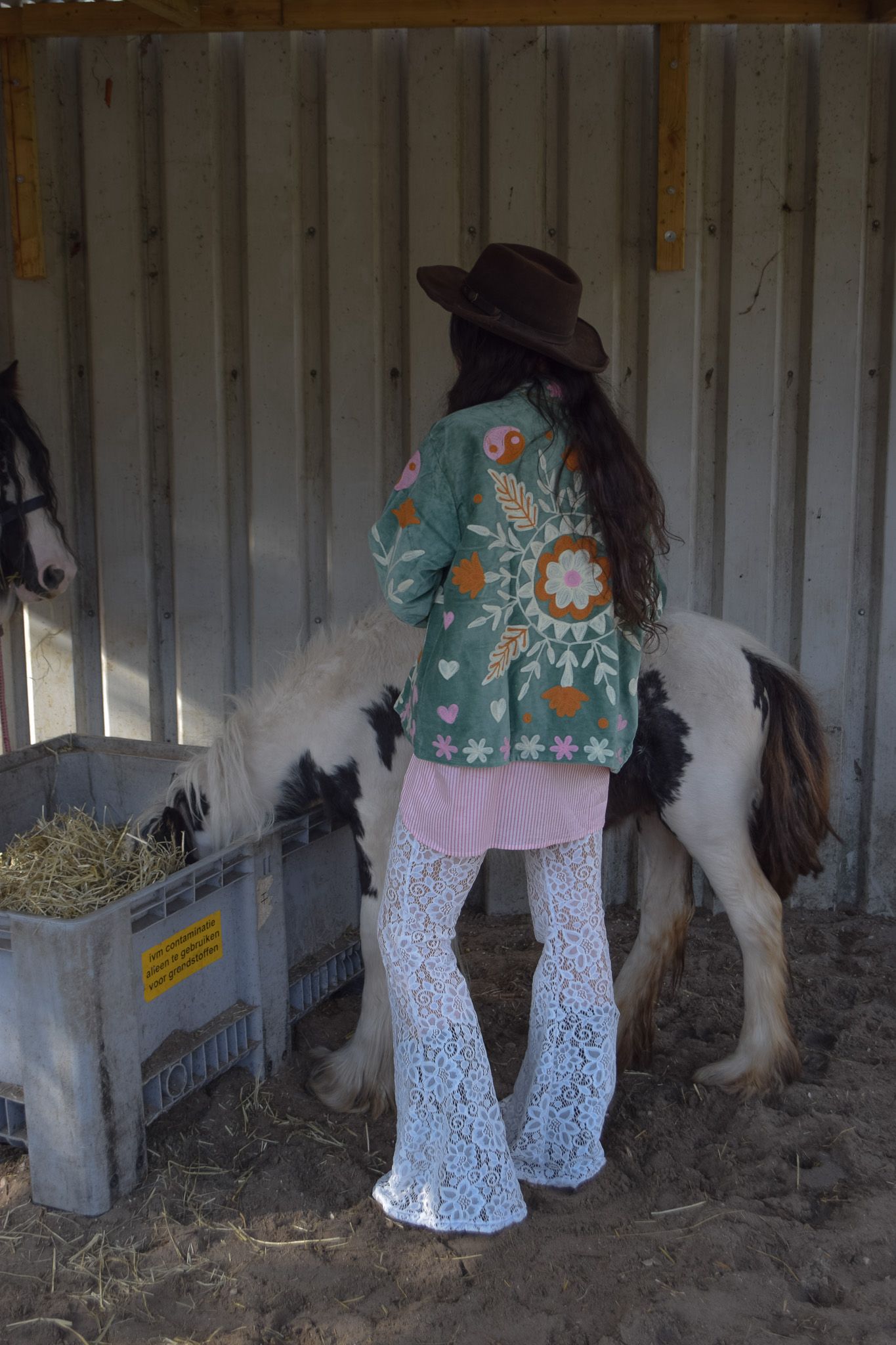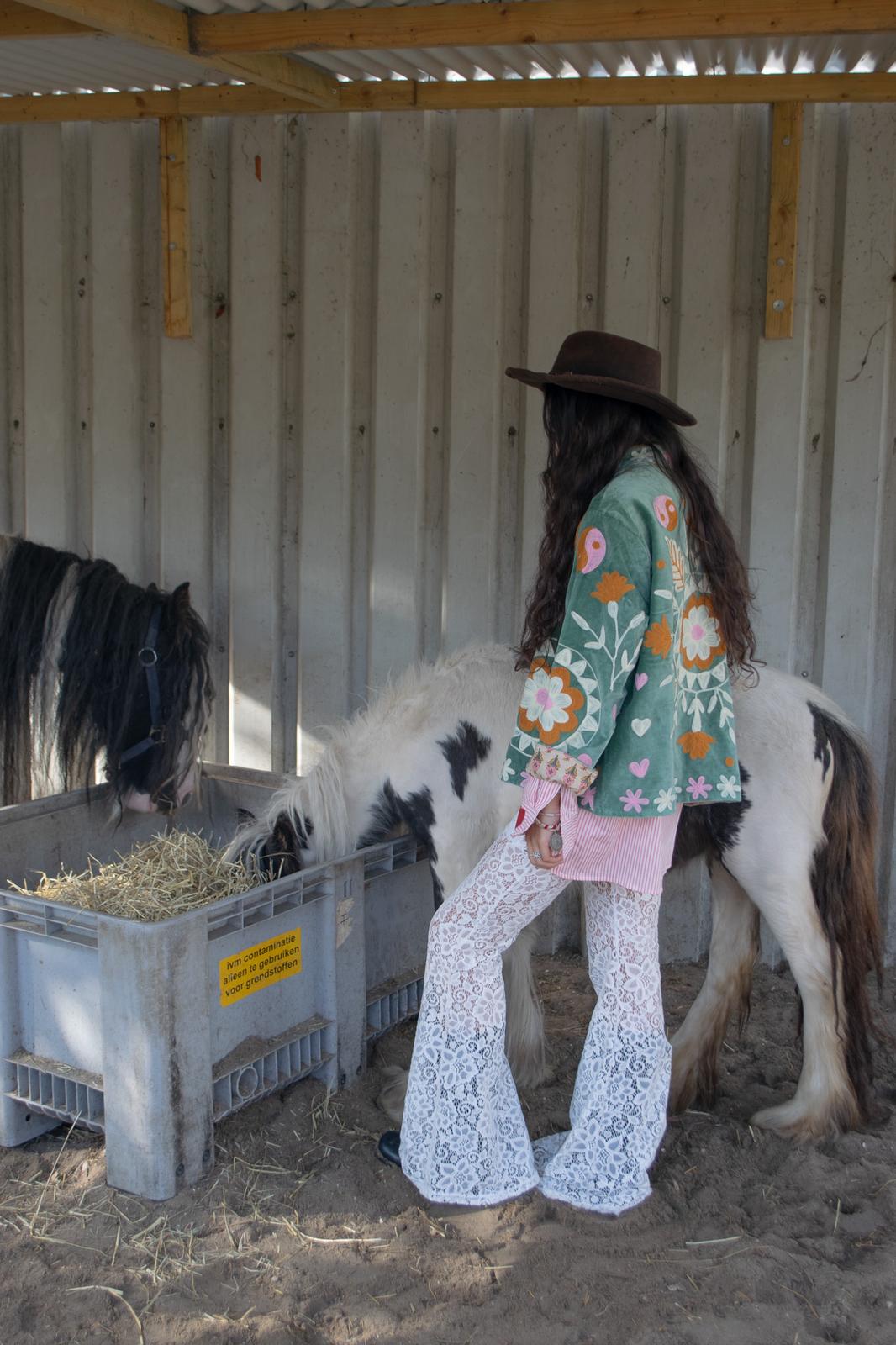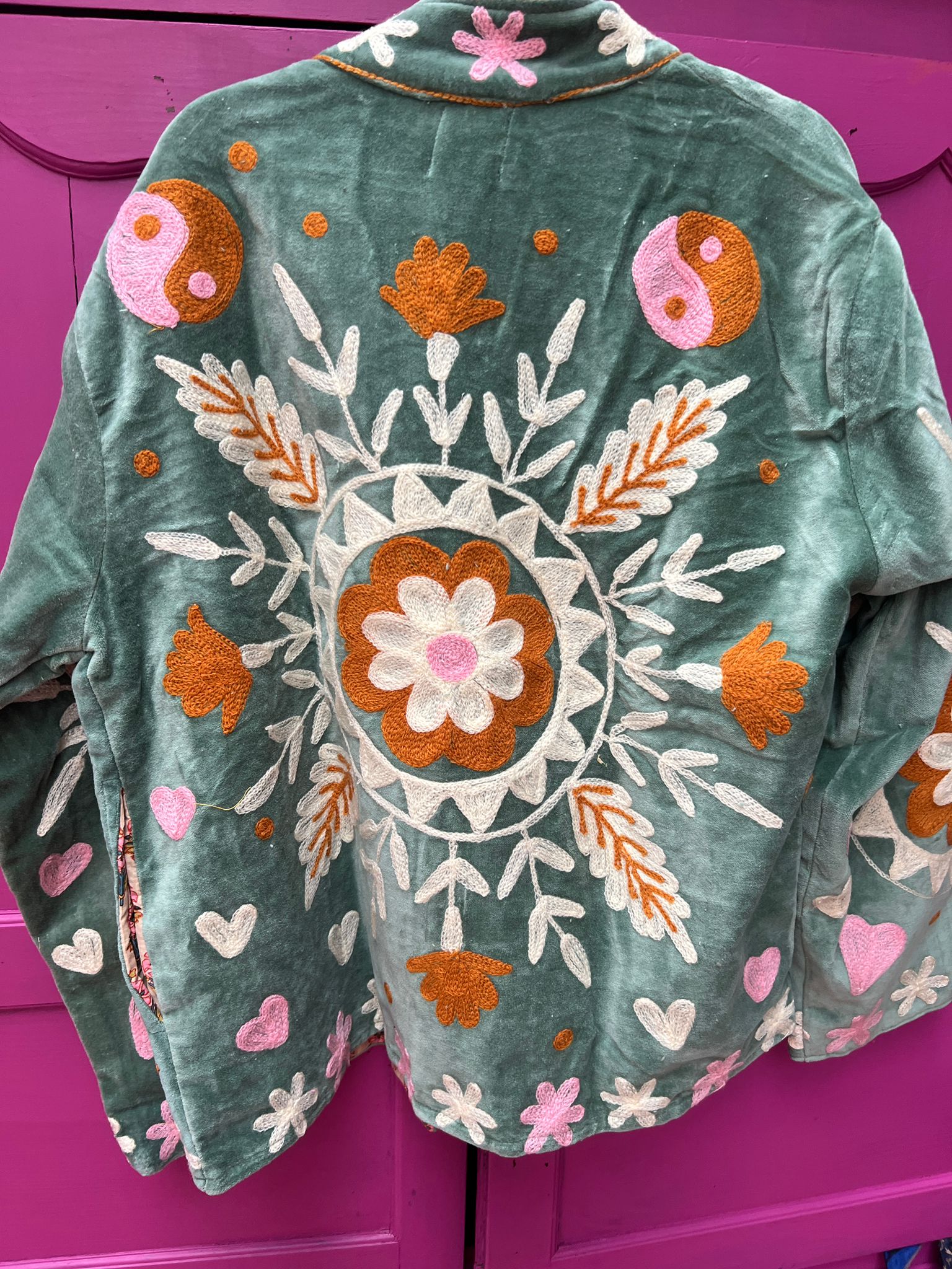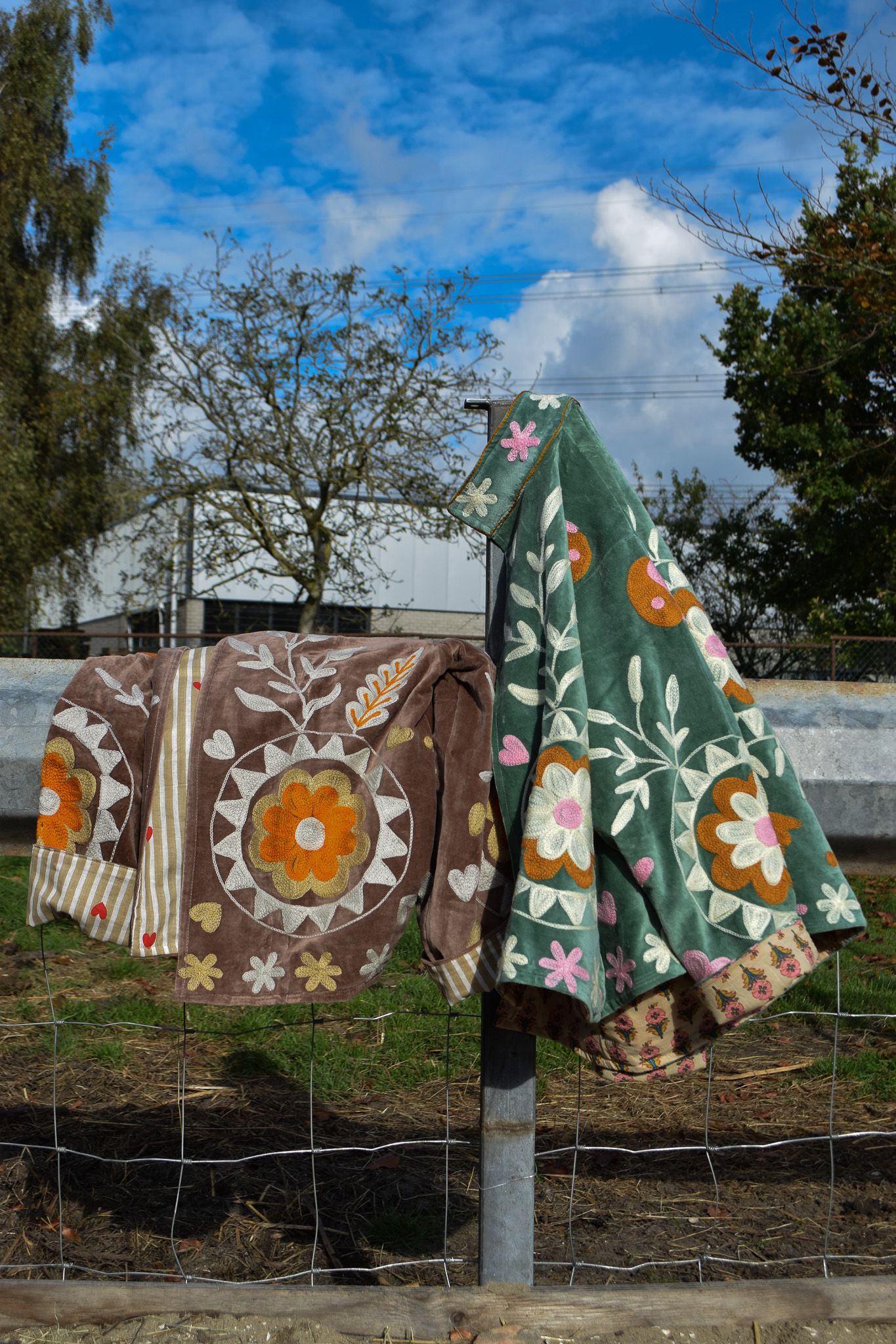 Dit jacket is gemaakt van velvet stof en geborduurd met de mooiste garen. Alles is zorgvuldig geselecteerd met respect voor mens en planeet.
