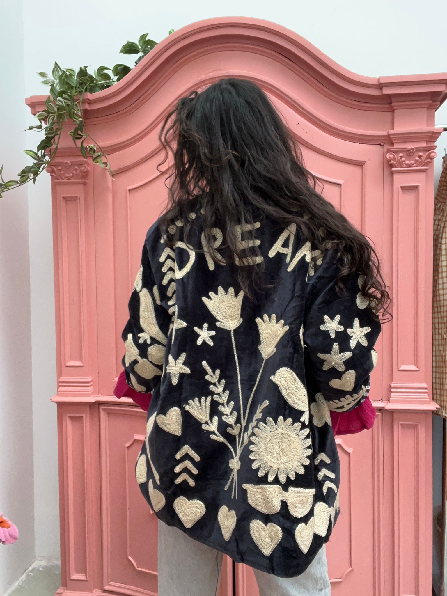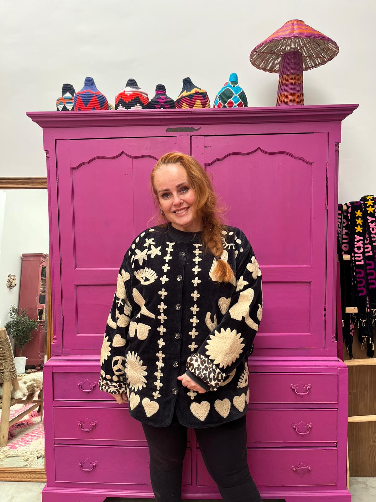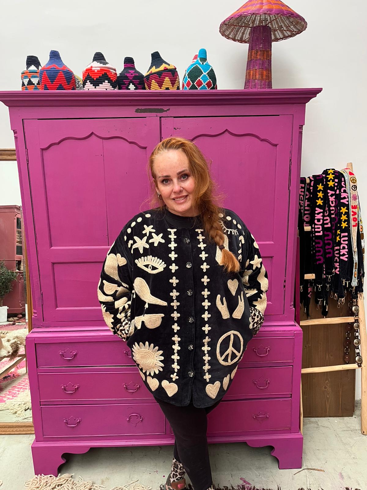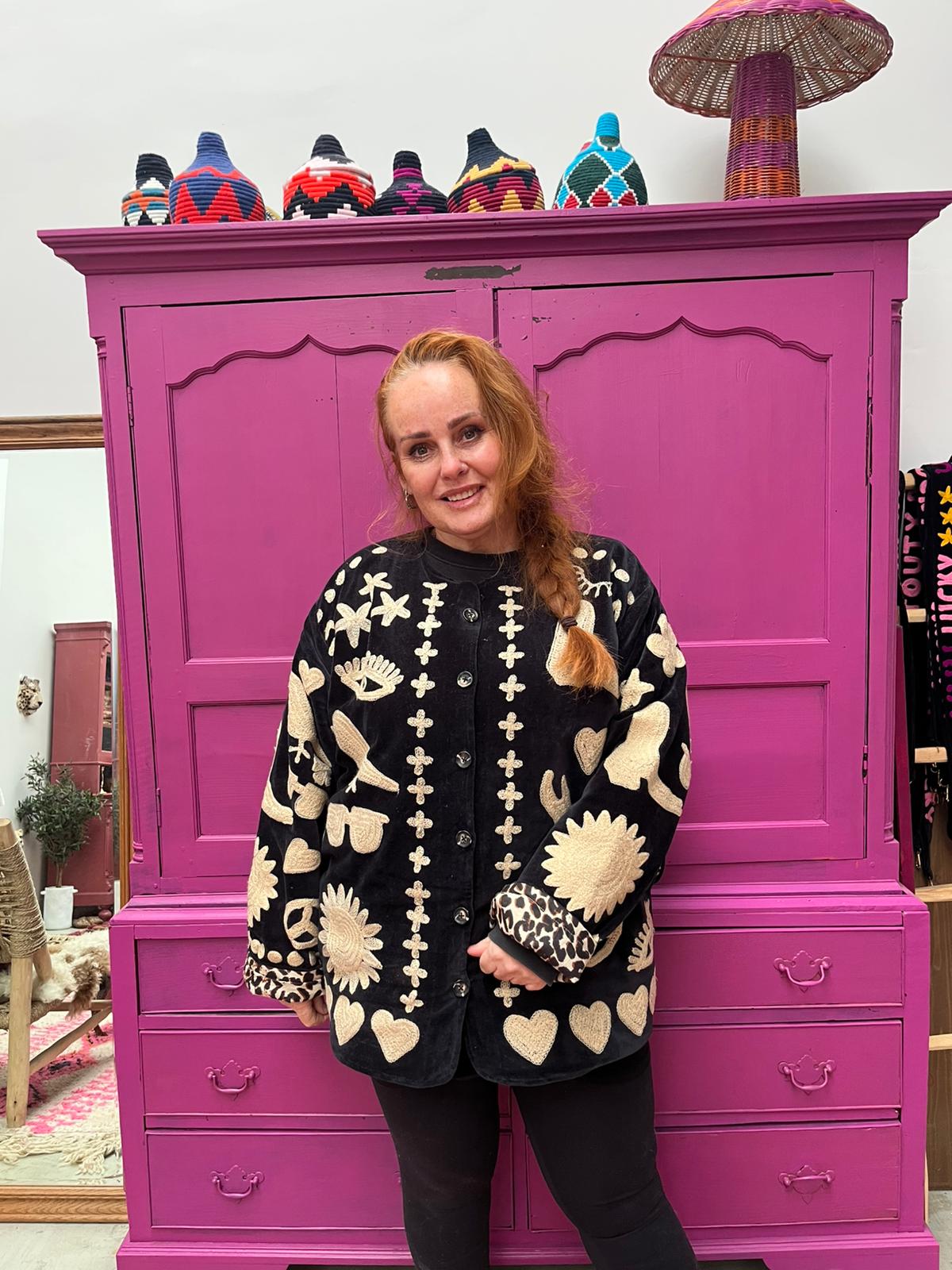 Dit jacket is gemaakt van velvet stof en geborduurd met de mooiste garen. Alles is zorgvuldig geselecteerd met respect voor mens en planeet.