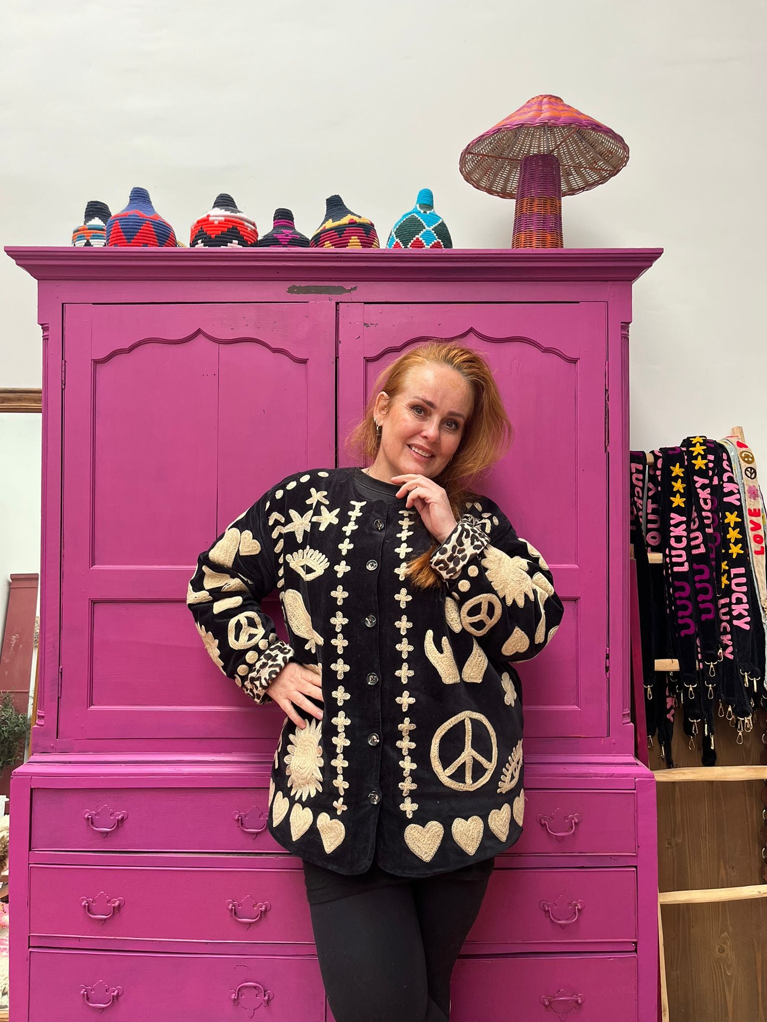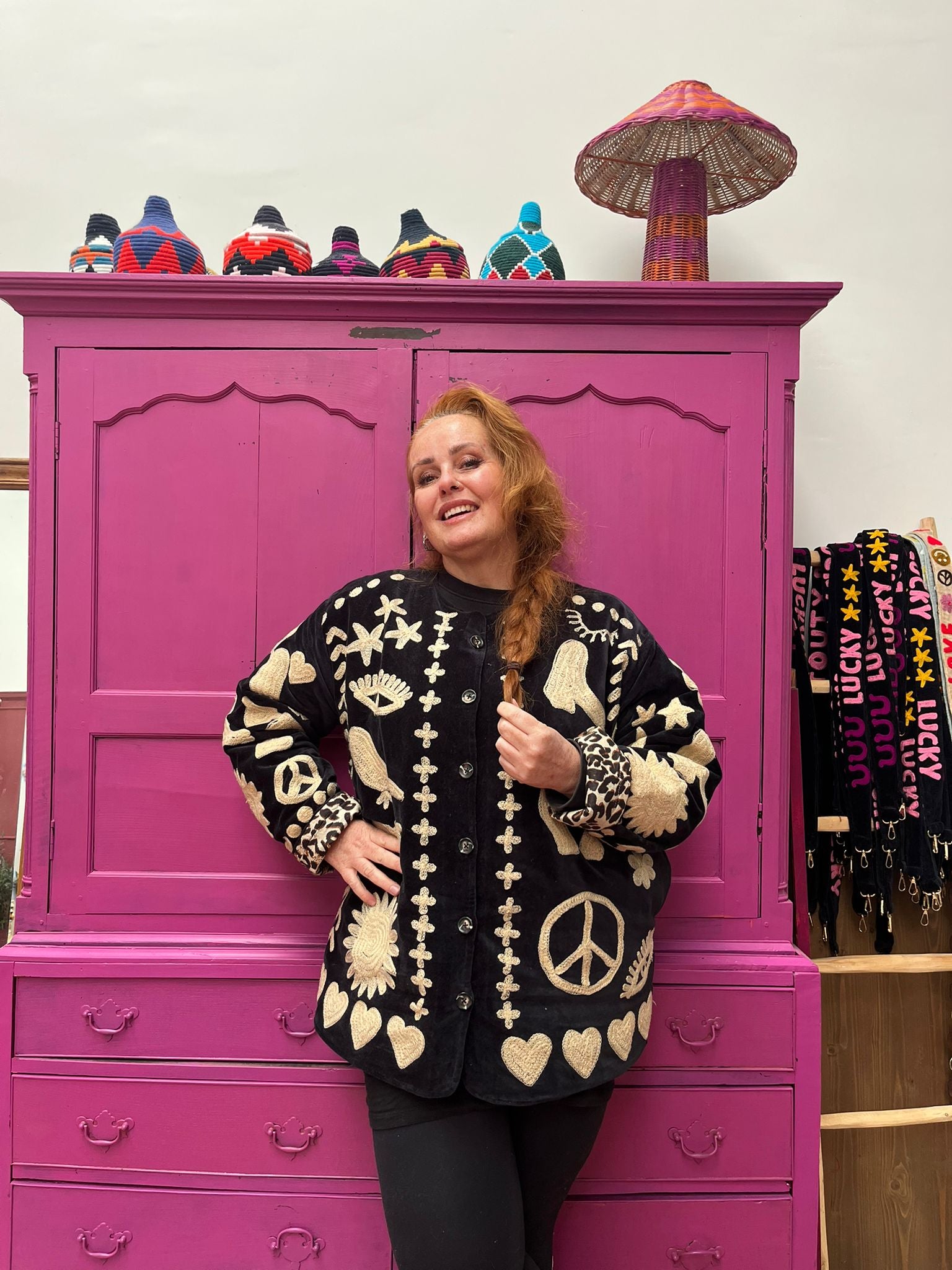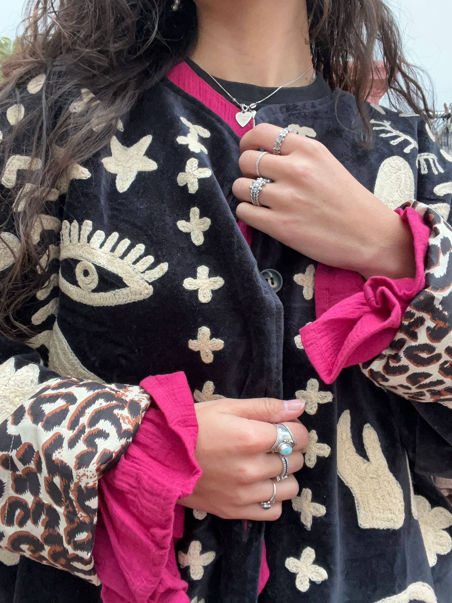 Dit jacket is gemaakt van velvet stof en geborduurd met de mooiste garen. Alles is zorgvuldig geselecteerd met respect voor mens en planeet.