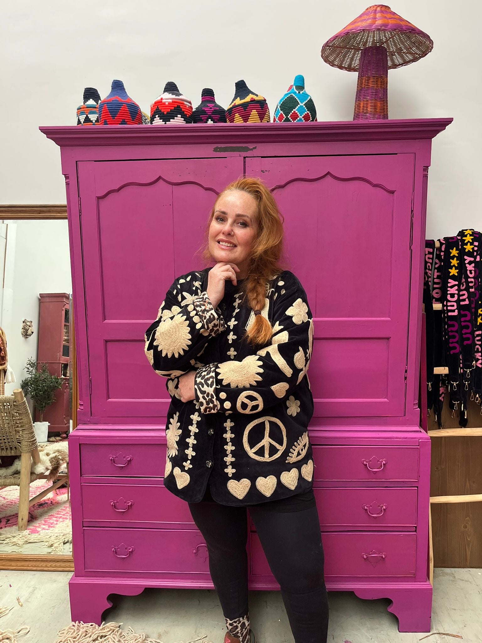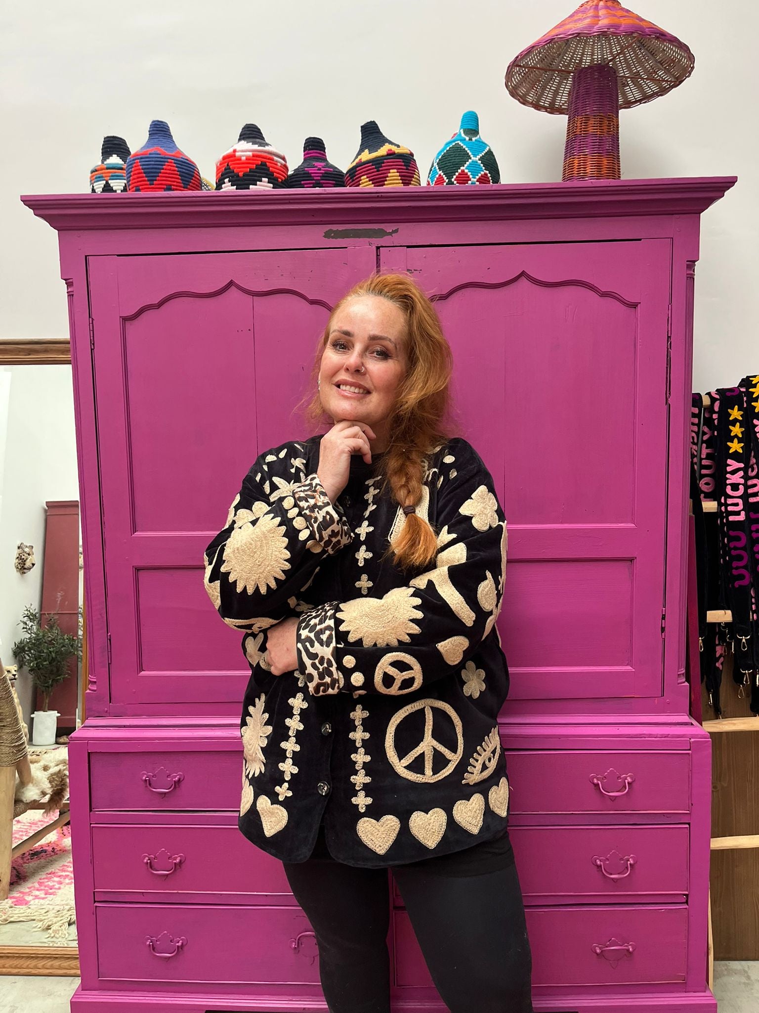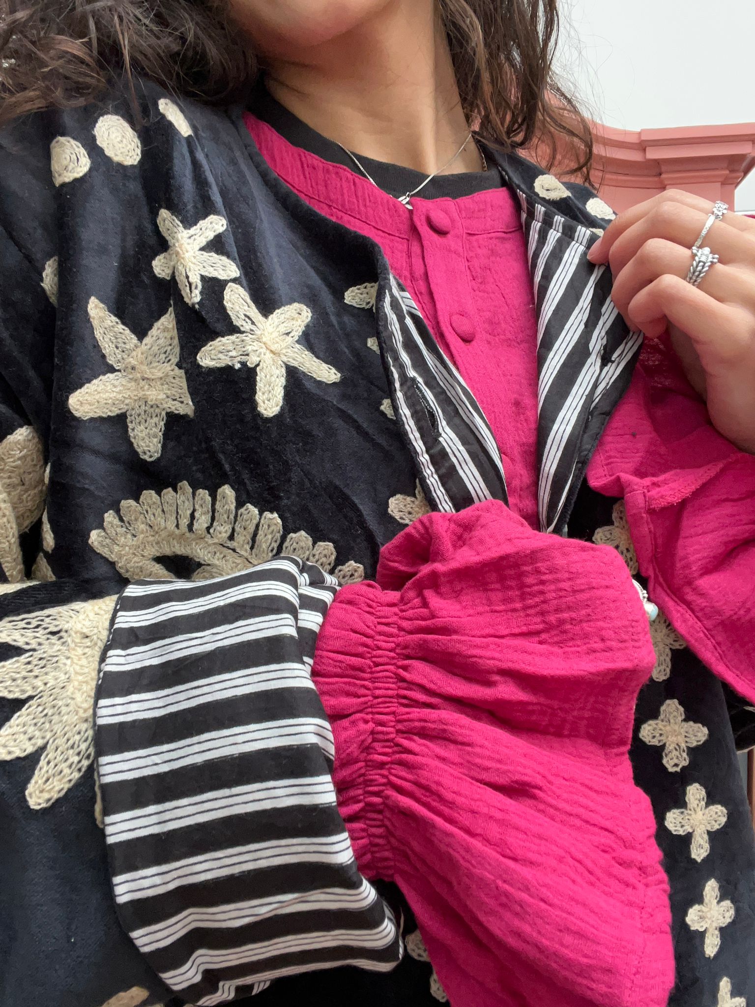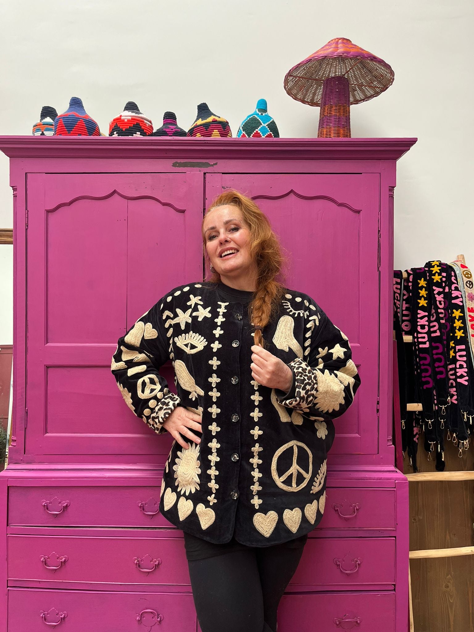 Dit jacket is gemaakt van velvet stof en geborduurd met de mooiste garen. Alles is zorgvuldig geselecteerd met respect voor mens en planeet.