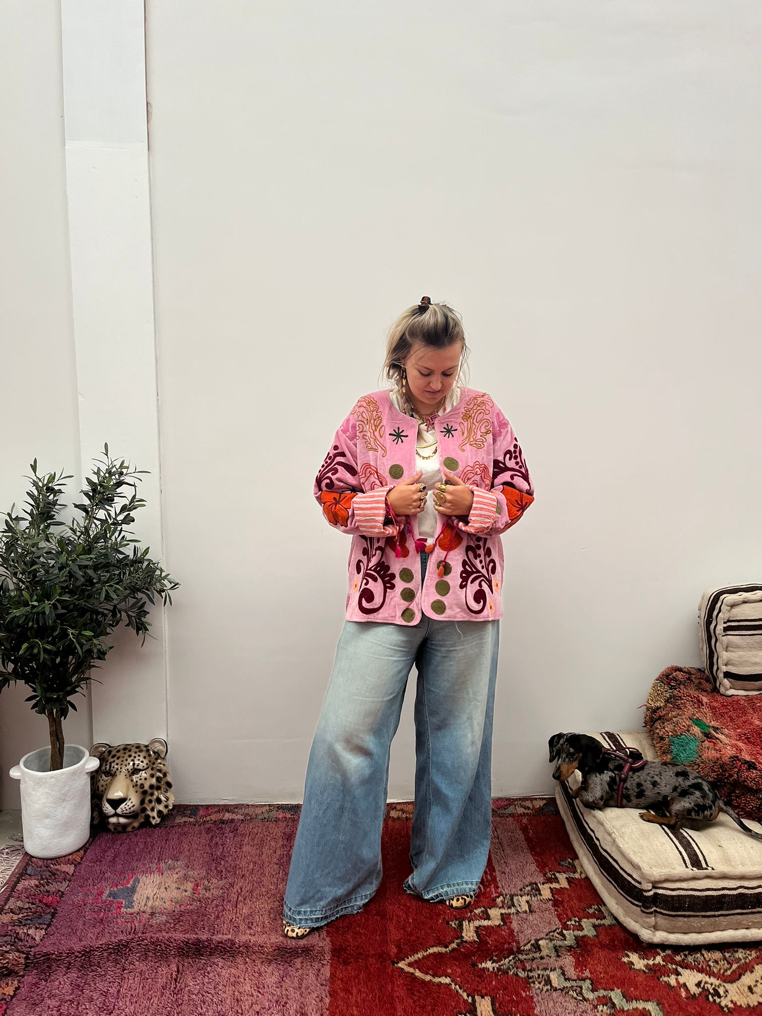 Dit jacket is gemaakt van velvet stof en geborduurd met de mooiste garen. Alles is zorgvuldig geselecteerd met respect voor mens en planeet.