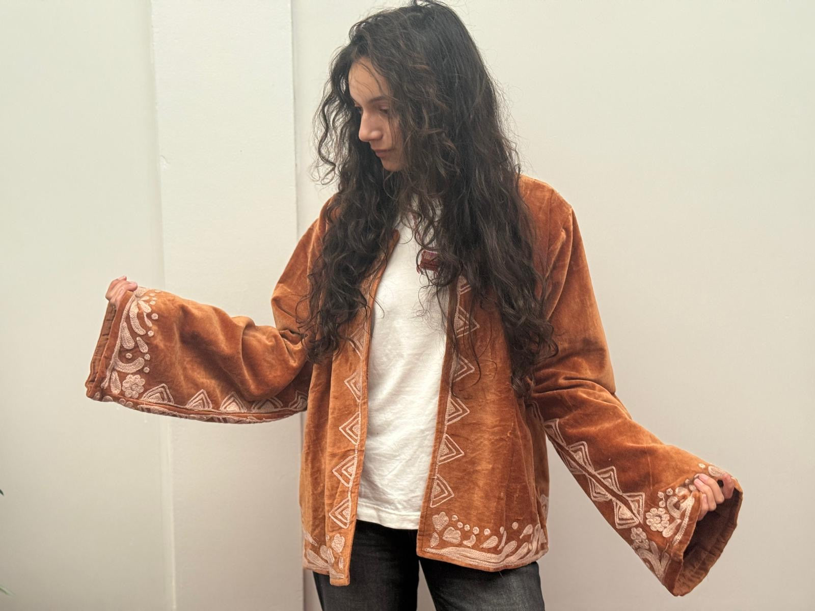 Velvet jacket Yasmine is met de hand gemaakt in India, speciaal ontworpen door ToutVintage en geschikt voor wie waarde hecht aan vakmanschap, duurzaamheid en karakter. Elk stuk is uniek en komt uit een gelimiteerde oplage van slechts 100 exemplaren.