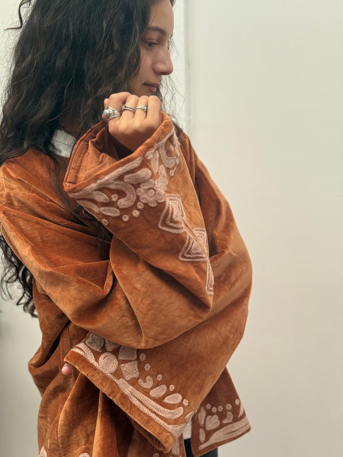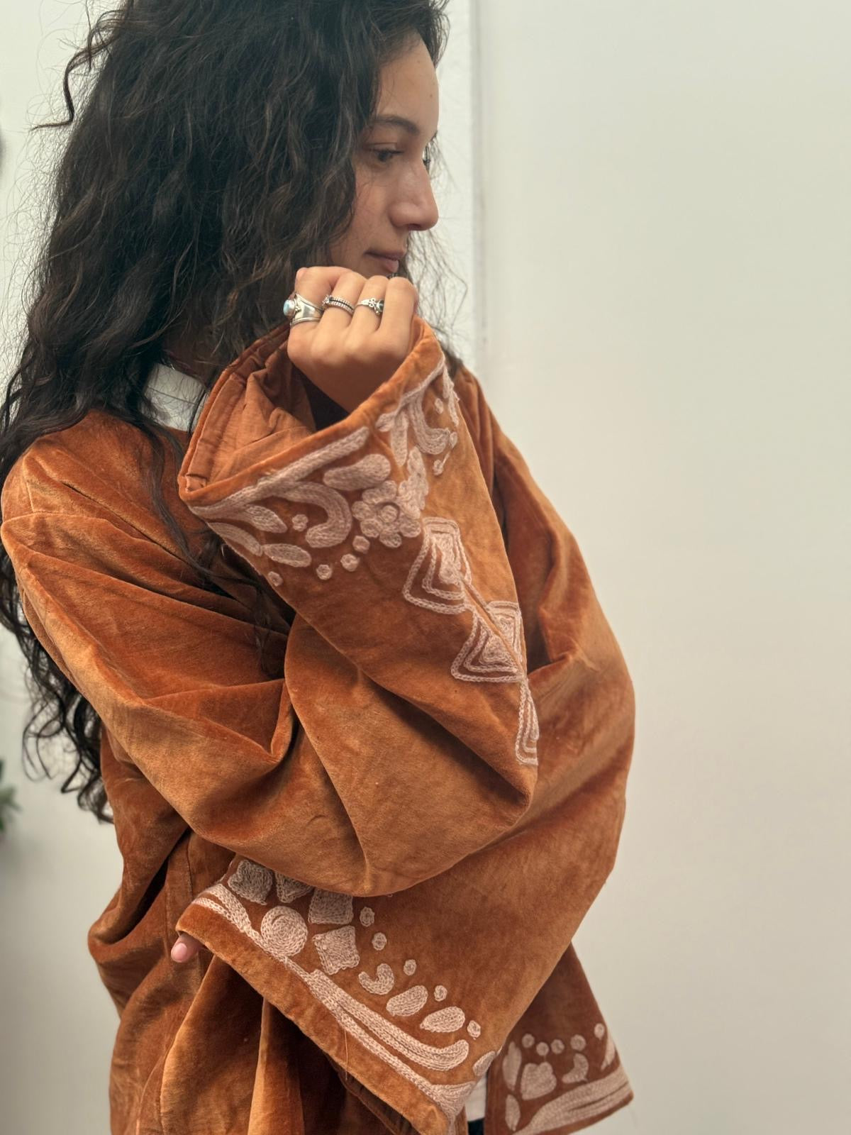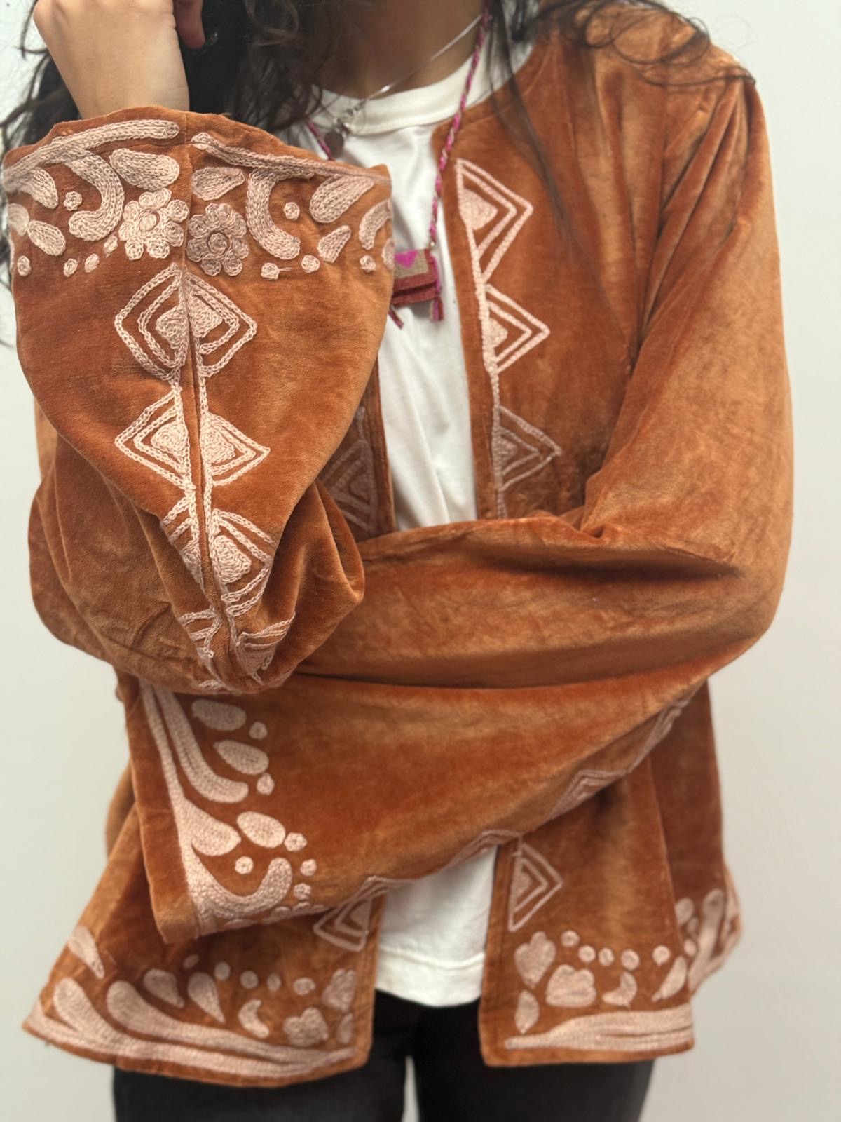 Dit jacket is gemaakt van velvet stof en geborduurd met de mooiste garen. Alles is zorgvuldig geselecteerd met respect voor mens en planeet.